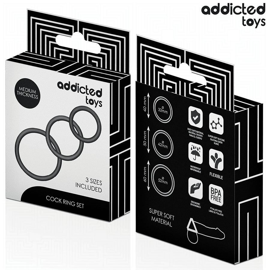 Este conjunto de anéis penianos da Addicted Toys inclui três anéis de tamanhos diferentes, projetados para fornecer estimulação intensa e desempenho aprimorado. Cada anel é feito de materiais de alta qualidade para garantir conforto e durabilidade durante o uso.
